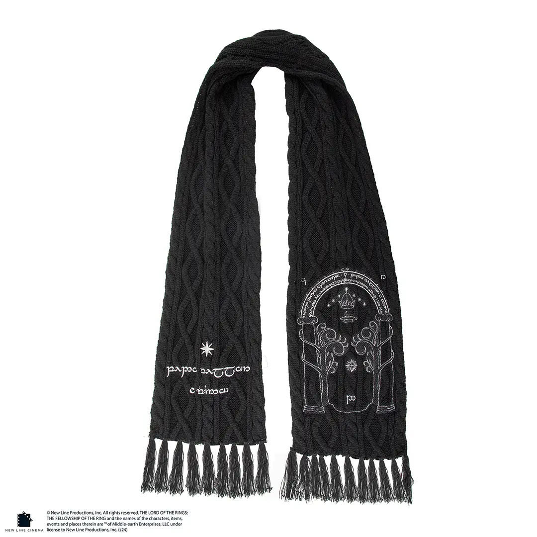 Ihanan pehmeä akryylinen palmikkoneulekaulaliina lämmittää pimeinä aikoina. Kaulaliinan toista päätyä koristaa applikoitu kuva Morian portista eli Durinin ovista, toisessa päässä on haltiakirjoituksella portin avaussanat. Morian portti johti Sumuvuorten vieressä olevaan Moriaan. Portti suljettiin ja lopulta unohdettiin, kun kääpiöt pakenivat Moriasta. Samalla unohtui portin avaussana. Gandalfin tulkittua portin riimukirjoituksen Sormusten saattue pääsi kulkemaan portista. Avaussana oli ’ystävä’, ja koko lause oli ’Puhu, ystävä, ja astu sisään’. Kaulaiinan koko on 170 x 20 cm.